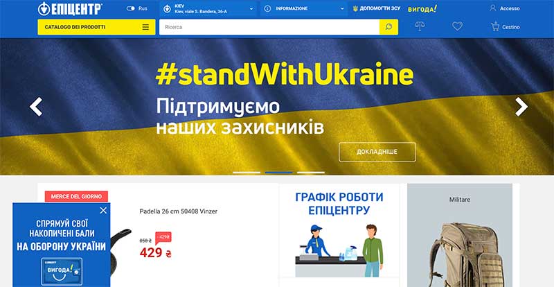 Foto di apertura: l’immagine postata su Facebook dall’insegna ucraina Epicentr