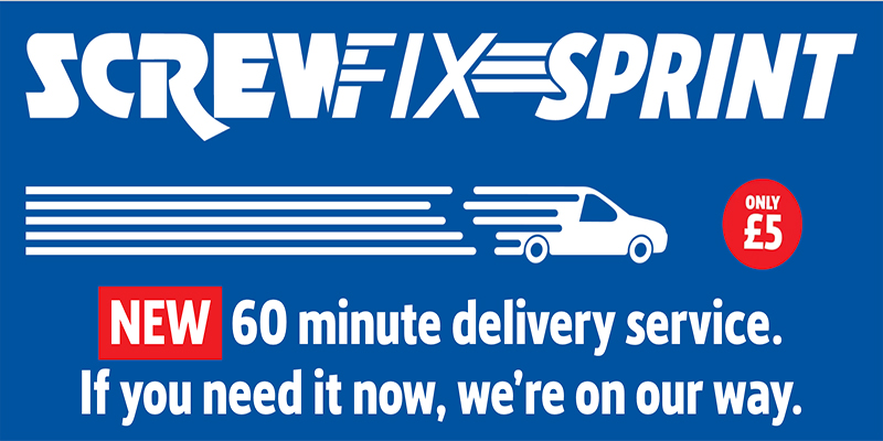 Screwfix lancia un nuovo servizio di consegna rapida chiamato Screwfix Sprint che recapita gli ordini, in loco, entro 60 minuti. Sprint è in fase di lancio e all’inizio di novembre più di 30 città del Regno Unito beneficeranno del servizio.