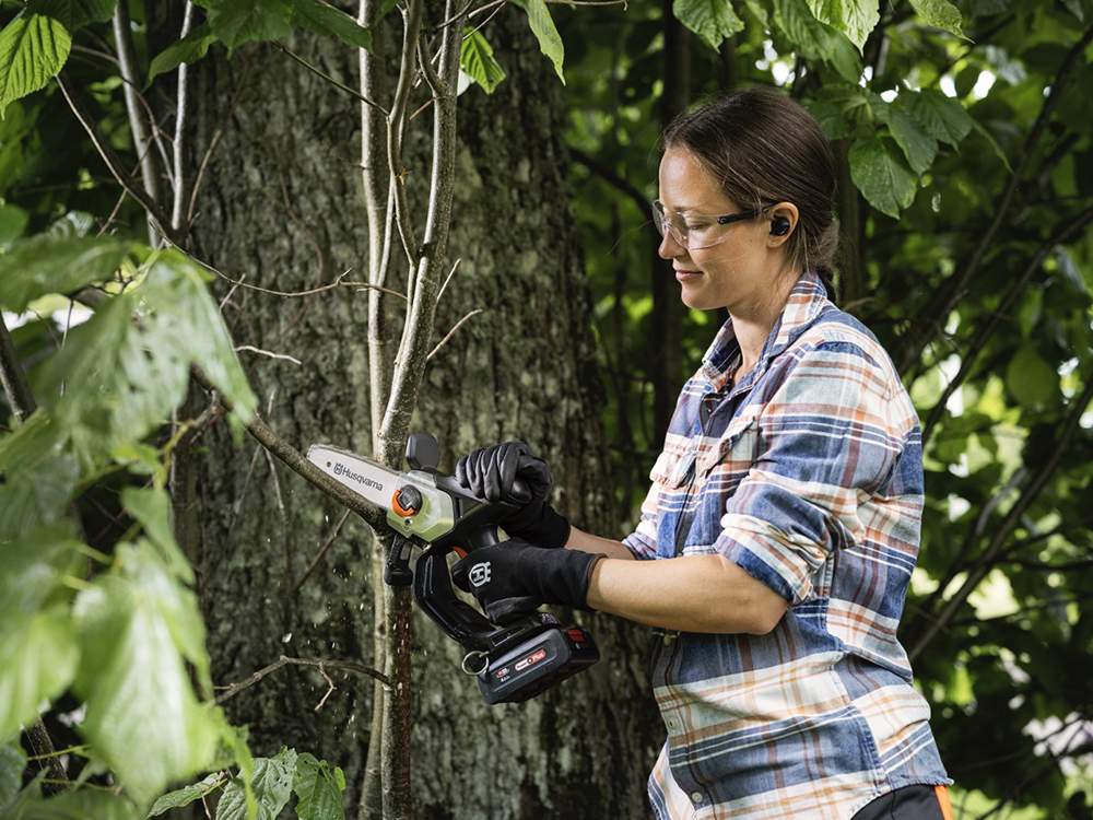 Il potatore a batteria Husqvarna Aspire P8X è progettato per tagliare con facilità i rami del giardino grazie alla sua capacità di taglio fino a 120 mm.