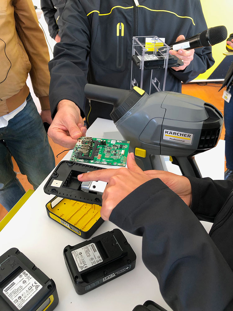 La presentazione è avvenuta durante la conferenza stampa del 20 settembre, alla presenza del CEO Hartmut Jenner e del direttore della comunicazione, David Wickel-Bajak (foto nella gallery). Il presidente ha ripercorso la lunga tradizione Kärcher nello sviluppo di nuovi prodotti e nella tecnologia elettrica prima e a batteria poi, passando per la digitalizzazione (novità dello scorso 2018), per entrare nel merito della novità vera e propria. Il sistema “Kärcher Battery Universe“.