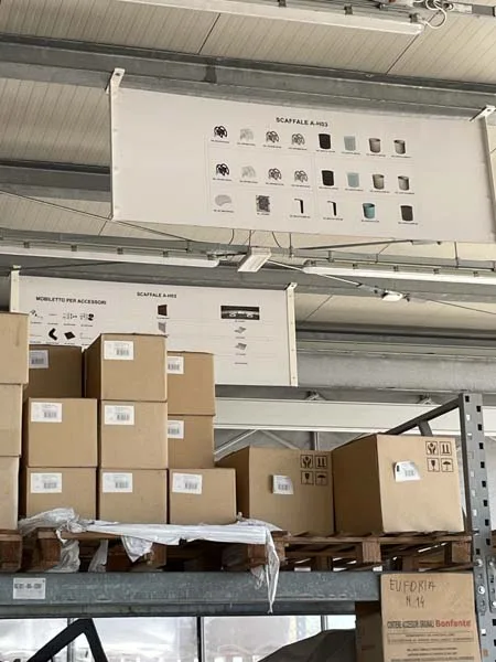 Il cuore logistico dell’azienda è l’Hangar 3: 500 mq progettati per la movimentazione veloce dei prodotti, con sistemi digitali di gestione degli ordini, sinottici che calcolano tempi e carichi di lavoro, e sollevatori digitali che sgravano il peso dei prodotti in fase di picking con referenze miste. “La digitalizzazione logistica è iniziata oltre 20 anni fa – spiega Dino -. Oggi il sistema comunica quante ore servono per completare un ordine e ti permette di organizzare meglio le risorse; inoltre i clienti che hanno accesso al nostro portale B2B, inviano l’ordine direttamente al magazzino senza passare per l’ufficio riducendo i tempi di gestione e di evasione”.