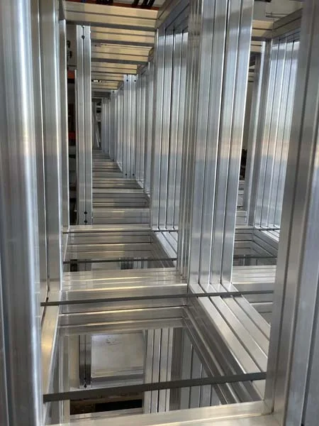 - In un’area dedicata dello stabilimento di Via Enrico Fermi, 182. Taglio laser robotizzato in fase di completamento per la realizzazione delle linee di prodotti in alluminio.