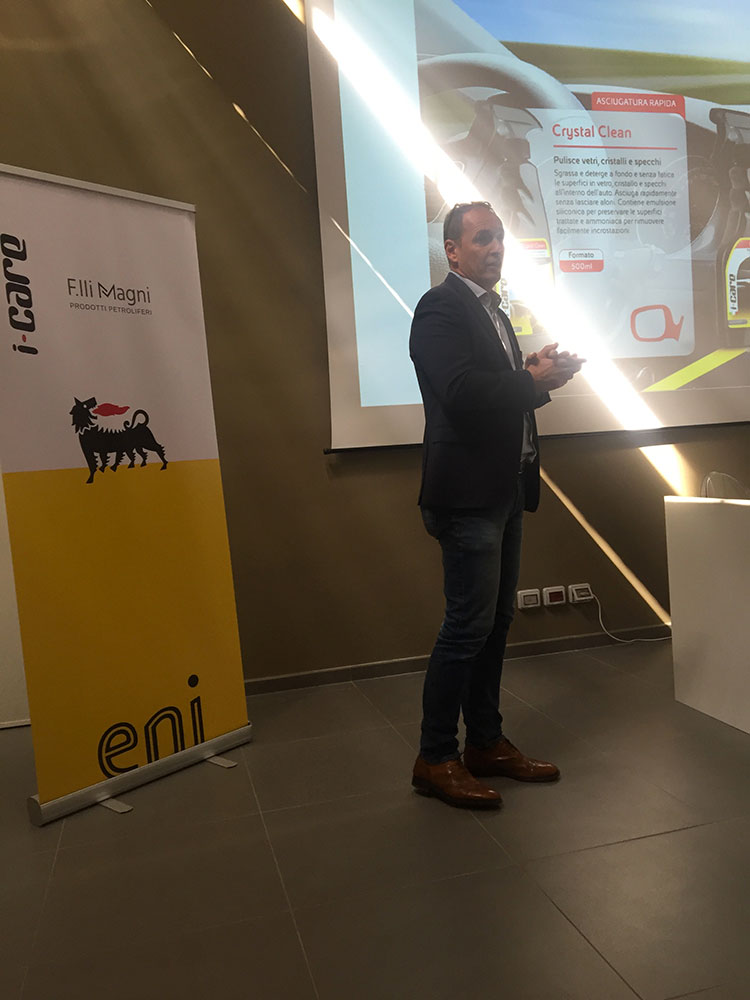 “Oggi viene presentata Eni i-care, una linea per la manutenzione e a cura dell’auto, che va ad inserirsi in modo complementare all’offerta già presente nel canale gd e gds”. Così ha aperto l’incontro Massimo Magni, direttore Gestione e Logistica dell’omonima azienda; incontro proseguito con gli interventi da parte dei rappresentanti della direzione ENI e di Andrea Grassilli, responsabile Mass Market per la F.lli Magni.