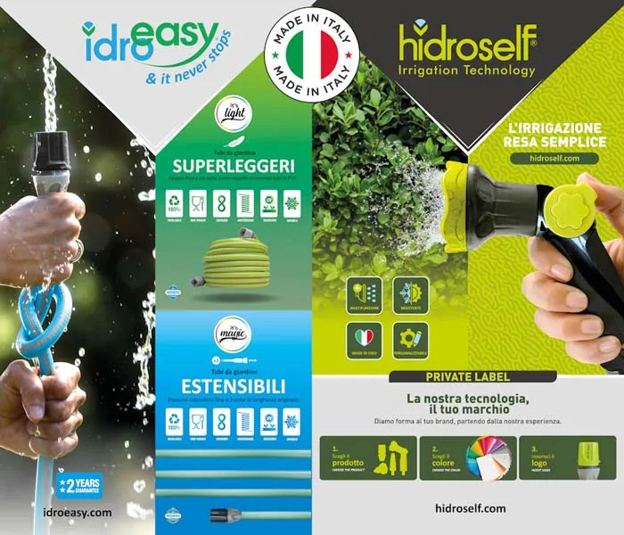 Lo stand ospiterà inoltre le linee Idroeasy e Hidroself, riferimenti consolidati nel settore dell’irrigazione grazie ai tubi superleggeri ed estensibili unici al mondo. Queste soluzioni permettono di ottimizzare logistica, stoccaggio e trasporto, mantenendo gli standard qualitativi tipici della produzione italiana.