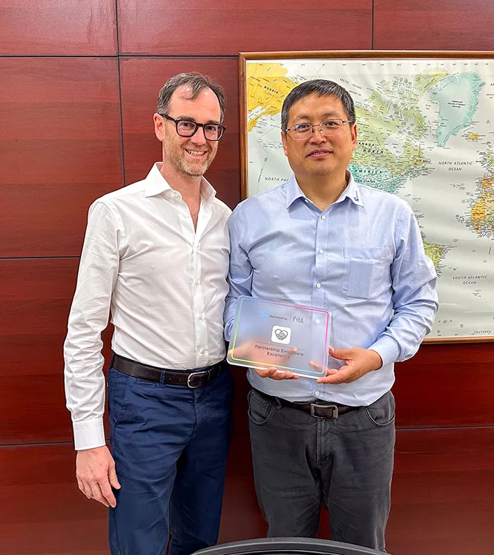 Nella foto: da sx Alessandro Mezzalira, CEO di FITT e Kang Haibiao Presidente e CEO di Starmatrix