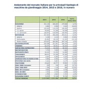Il bilancio del 2016 evidenzia, anche a causa di un andamento climatico con temperature elevate e scarsa piovosità, una complessiva flessione per quanto rigaurda le macchine “Tradizionali” della manutenzione di piante e tappeti erbosi.