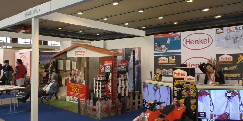 Le dominanti dello stand Henkel erano sostanzialmente due: il concorso “Costruisci il tuo sogno”, con in palio due buoni spesa da 500 euro ogni settimana, oltre a un maxi premio finale di 5.000 euro, per i fortunati clienti che acquistano uno dei prodotti Henkel in promozione; e la gamma dei prodotti Pattex che, nel campo degli adesivi è la regina in molte ferramenta e centri fai da te.