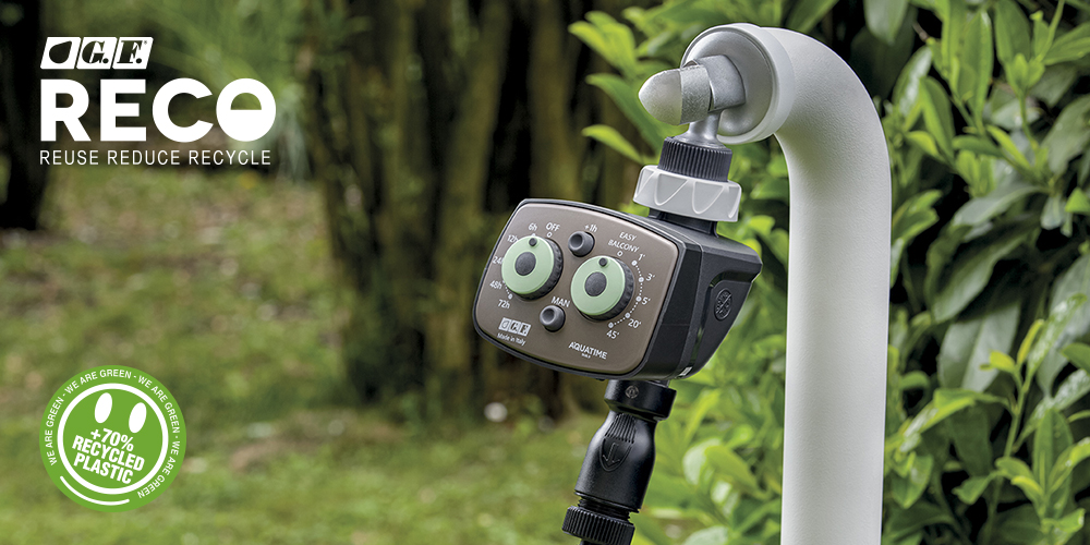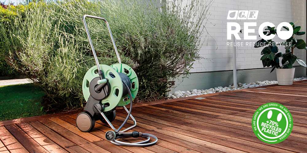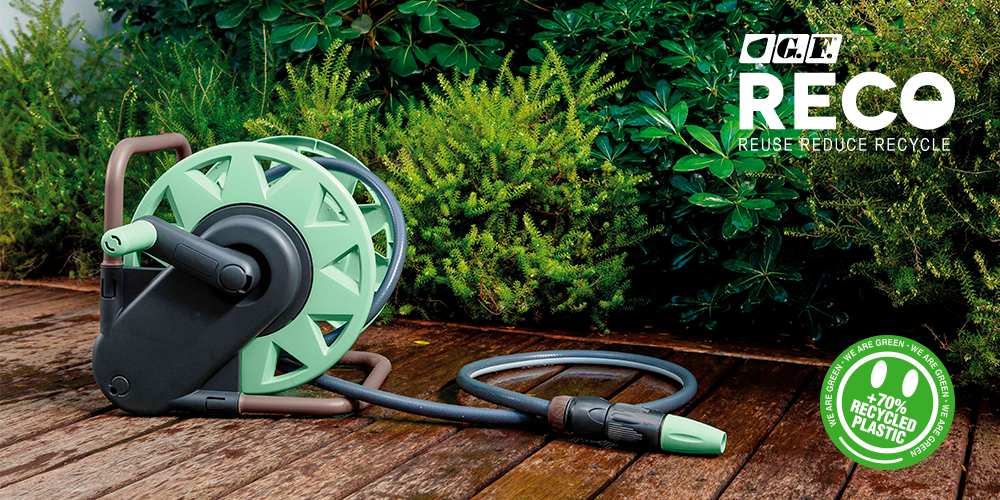 RECO è una gamma completa di prodotti per l’irrigazione di giardini, terrazze e balconi composta da raccordo, lance, pistole, carrello avvolgitubo, sistema di irrigazione goccia a goccia, ideale per la cura delle piante durante le vacanze ma anche nella vita di tutti i giorni.