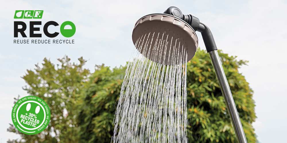 La gamma comprende anche la Doccia Solare SUNNY STYLE RECO realizzata con oltre il 30% di plastica riciclata: il coperchio, in particolare, è composto da circa il 90% di PET riciclato proveniente da plastica post-consumo.