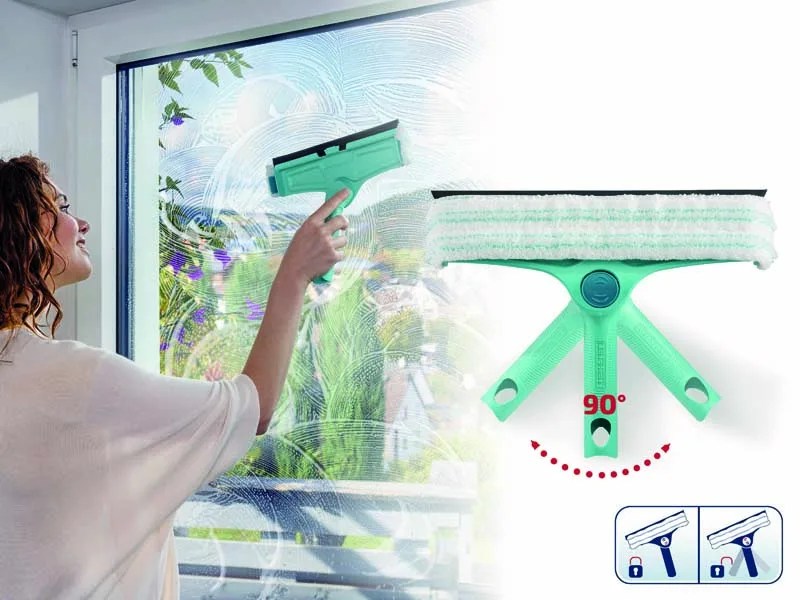 La Germania ha voluto ripensare il prodotto modificandolo nella forma, enfatizzandone le caratteristiche e trasformandolo in un “quattro in uno”. Ciò significa che è possibile, contemporaneamente, pulire i vetri e i telai, inoltre la lamina in gomma lo rende antigoccia ed è possibile posizionare il manico in tre diverse posizioni, con un nuovo sistema più comodo ed efficiente. E’ disponibile in due dimensioni ed è compatibile con la gamma dei manici.