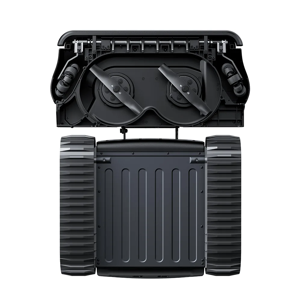 One Plus adotta il sistema di trazione a cingoli di Lymow. Può salire pendenze ripide di 45° e superare ostacoli fino a 7 cm, inclusi rami spessi, cordoli e terreni irregolari.