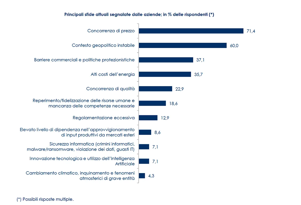 Una delle principali preoccupazioni è rappresentata dall’inasprimento della concorrenza di prezzo dichiarata dal 71,4% delle imprese. La competizione sulla qualità, sebbene meno sentita, preoccupa comunque il 22,9% degli operatori.