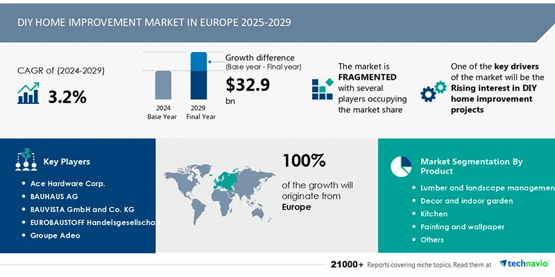 Secondo l’ultimo rapporto di Technavio, il mercato europeo del DIY crescerà di ben 32,9 miliardi di dollari tra il 2025 e il 2029, con un tasso di crescita annuale composto (CAGR) del 3,2%.
