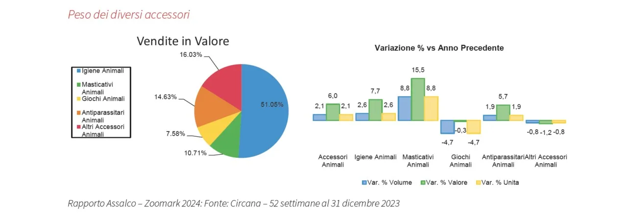 Andamento positivo anche per tutto ciò che ruota intorno alle referenze per il pet care. Oltre all’igiene, secondo i dati del Rapporto Assalco-Zoomark, sono in crescita anche i giochi e gli accessori: guinzagli, cucce, ciotole, gabbie, voliere, acquari, tartarughiere, utensileria, e molto altro ancora. Referenze che nella Gdo valgono 85 milioni di euro, con un fatturato in crescita del 6%.