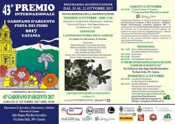 La seconda giornata, sabato 21 ottobre, dedicata nella serata alla cerimonia di assegnazione dei Garofani d’Argento, si è aperta nella mattinata con un Concorso di arte floreale che ha visto la partecipazione di Giovanna Mirabella (Catania), Maria Cannone (Catania), Giuseppe Petriglieri (Ragusa) vincitore presso la giuria popolare e Thaisia Gentilepatti (Messina), vincitrice del premio della critica. Il Concorso coordinato da Rita Alfino, maestra fiorista, ha visto i quattro concorrenti cimentarsi in tre diverse prove che avevano come costante l’utilizzo di meravigliosi garofani e degli straordinari e unici rami di Rosa Smeralda provenienti dalla Sardegna.