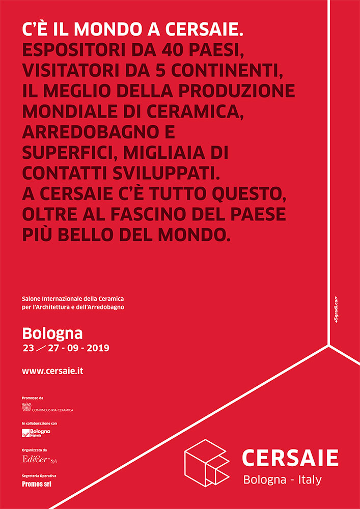 Cersaie è a Bologna dal 25 al 27 settembre 2019.