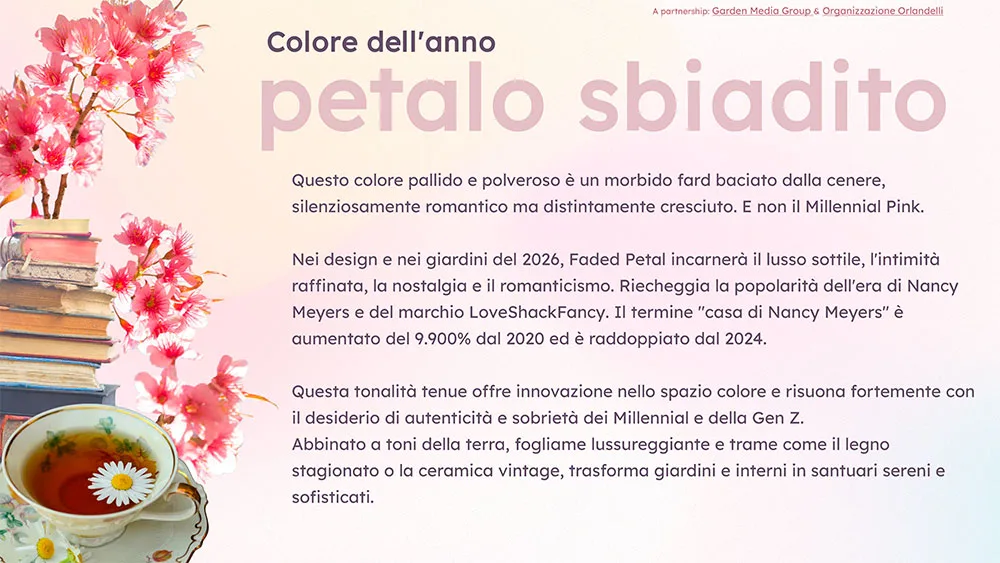 Il tema scelto per il 2026 è “Spremere limoni”, un invito a trasformare sfide e battute d’arresto in opportunità. “Fare limonata dai limoni che la vita ci offre” – spiega il report, che ogni anno individua le principali direttrici di sviluppo per il settore green – significa usare curiosità e creatività per generare nuove possibilità, senza negare la complessità del presente.