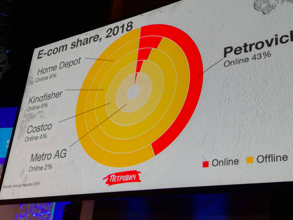 Ad oggi Petrovich realizza infatti il 43 % del proprio fatturato online, quota eccezionale considerato anche quanto fanno sull’online i principali retailer del settore: Home Depot (USA) 8%; Kingfisher Plc (UK) 6%; Costco (USA) 4%; Metro AG (DE) 2%.