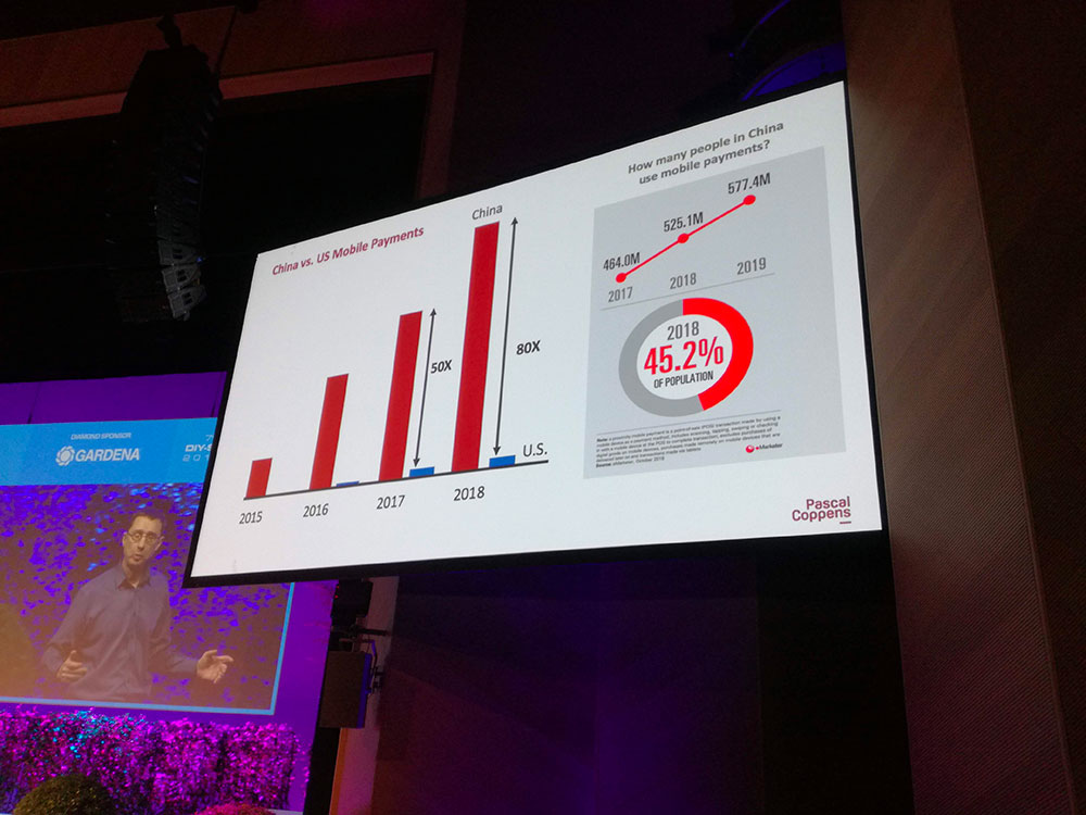 Un paese la Cina dove tutto ciò si fonde con la tecnologia, attualmente il mobile payment è l’80% più sviluppato rispetto a quanto vediamo in Europa, questo perché dice Coppens, già dal 1990 la Cina ha investito e puntato sullo sviluppo di questa tecnologia, così come sullo sviluppo del canale online; un paese quindi dove oggi vediamo le infrastrutture telematiche ed elettroniche più all’avanguardia del pianeta.