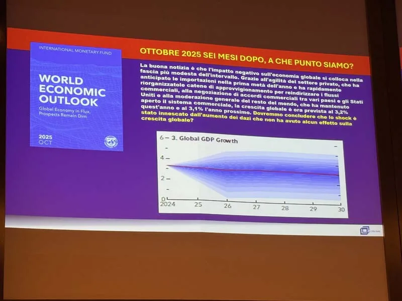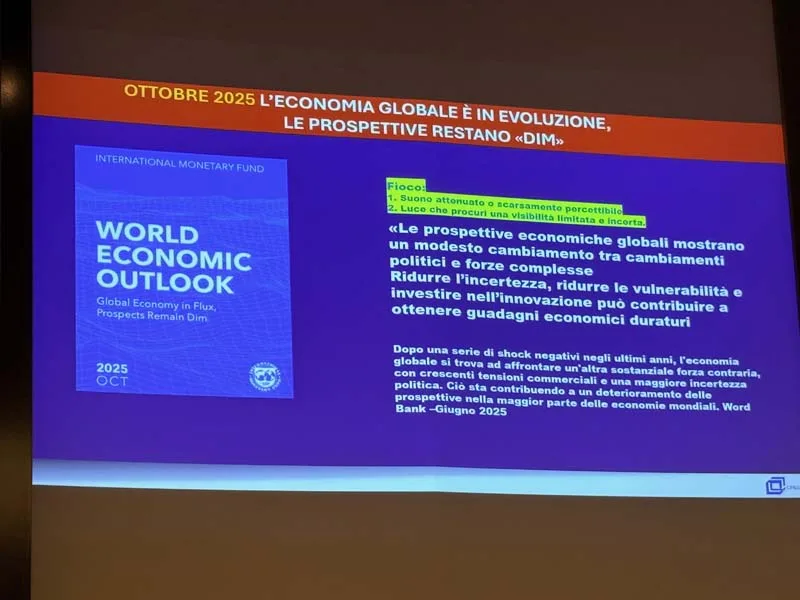 Il contesto internazionale è caratterizzato da forte incertezza. Il Fondo Monetario Internazionale, nel suo ultimo rapporto, ha evidenziato come l’indice di incertezza della politica commerciale sia “uscito dai grafici”, utilizzando nel sottotitolo del World Economic Outlook il termine “dim” – che in inglese significa sia “suono attenuato” che “luce che procura visibilità limitata e incerta”. Un segnale eloquente delle difficoltà previsionali attuali.