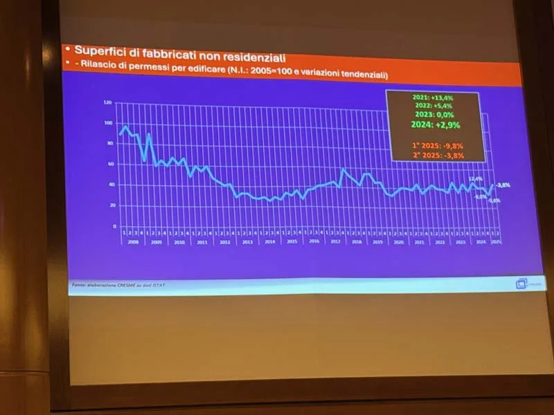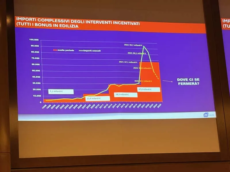 Tuttavia, lo scenario futuro sarà radicalmente diverso. Il super bonus è crollato da 46 miliardi di euro all’anno a circa 3 miliardi. Considerando tutti gli incentivi insieme, si è passati da un picco di 94,5 miliardi a una previsione di circa 28-30 miliardi di euro. “La capacità di fare le scelte giuste e di operare in termini competitivi vincenti è lo scenario che abbiamo davanti”, ha ammonito il Direttore del CRESME.
