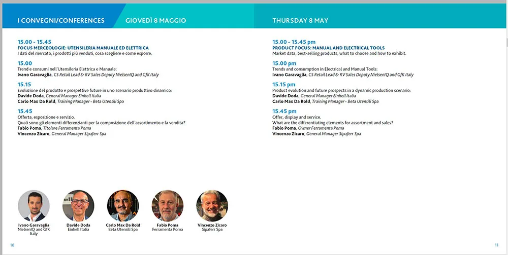 Inizierà, Ivano Garavaglia, CS Retail Lead & RV Sales Deputy di NielsenIQ e GfK Italy, aprirà i lavori con un’analisi sui trend e consumi nell’utensileria elettrica e manuale, fornendo dati aggiornati sui prodotti più venduti e sulle nuove tendenze d’acquisto.