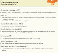 Fatta eccezione per i settori del Grande e Piccolo Elettrodomestico – che registrano un incremento delle vendite – tutti gli altri settori mostrano trend negativi.