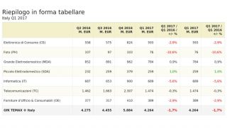 I Risultati di GfK TEMAX® Italia per il primo trimestre del 2017, danno il mercato italiano dei Technical Consumer Goods (TCG) con un calo dell’1,7% rispetto allo stesso periodo dell’anno precedente, con un fatturato di 4,3 miliardi di euro.