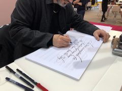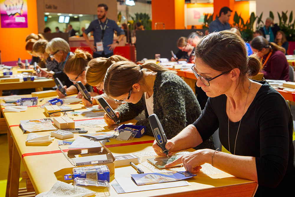 Infine, grande partecipazione ai corsi che vengono organizzati a rotazione nelle diverse giornate della manifestazione. Tra le tendenze più in voga – peraltro osservate anche in qualche stand – il lettering, in sostanza lo scrivere in bella calligrafia.