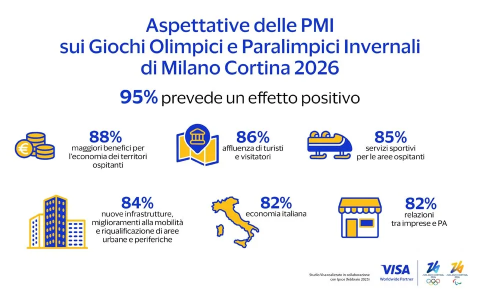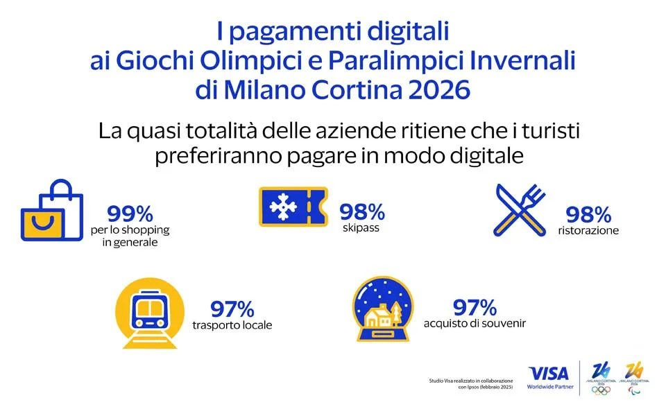 A dirlo è uno studio Visa, Official Payment Technology Partner dei Giochi 2026. La ricerca, condotta da Ipsos, è stata realizzata attraverso 300 interviste telefoniche condotte a febbraio su un campione che comprende aziende localizzate sia nei territori ospitanti (Milano, Cortina d’Ampezzo, Bormio, Livigno, Anterselva, Predazzo, Tesero, Verona) sia in aree limitrofe non direttamente coinvolte nell’evento.