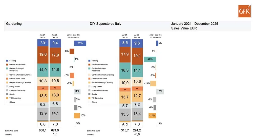 Il comparto Garden, che resta uno dei segmenti più esposti alle variabili esterne, ha registrato nel 2025 un andamento irregolare, con performance differenti tra le sotto-categorie.