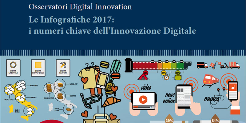 E’ stata rilasciata poco prima della fine dell’anno la pubblicazione del Politecnico di Milano relativa agli Osservatori Digital Innovation. Con il titolo “Le Infografiche 2017: i numeri chiave dell’Innovazione Digitale”, il Comitato Scientifico, composto da Umberto Bertelè, Alessandro Perego, Raffaello balocco e Mariano Corso, ha presentato, in grafici, per l’appunto, lo stato dell’arte dell’avanzamento digitale in Italia, negli ambiti e utilizzi più diversi.