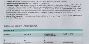 Considerando la flessione del numero di punti vendita della GSS del bricolage – 0,7% nel 2015 – che dal 20111 al 2015 ha perso l’8,1% della sua rete, la quota di mercato continua a crescere passando dal 26,8% del 2014 al 27,2% del 2015. Un dato che, considerando gli altri comparti merceologici del Non Food, si posiziona al terz’ultimo posto seguito solo dal comparto fotografia e mobili/arredamento.