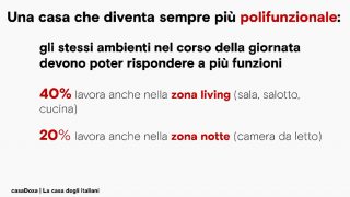 In generale, sottolinea la ricerca Doxa, la casa risulta essere sempre più polifunzionale – gli ambienti durante la giornata si trasformano – e in grado di interpretare al meglio le esigenze molteplici e differenziate di tutti i membri della famiglia.
