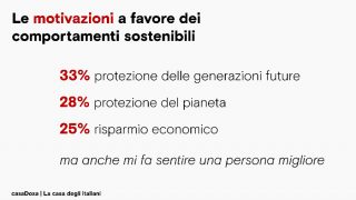 Curiosamente sono gli over 54 i più sensibili al tema della sostenibilità, anche in un’ottica di protezione delle generazioni future, come dichiarato dal 33% del campione. Il 28% pensa alla protezione del pianeta e il 25% al risparmio economico.
