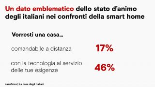 E per il futuro? Guardando ai dati Doxa, emergono due filoni per cui gli italiani si dichiarano disposti a mettere mano al portafoglio: da una parte la sicurezza, con in primis la messa a regime di impianti antintrusione e/o dispositivi per monitorare allagamenti, incendi o cortocircuiti; e dall’altra il comfort con, tra gli altri, termostati/climatizzatori o, ancora, elettrodomestici. Anche in una ottica di riduzione dei consumi e degli sprechi energetici.