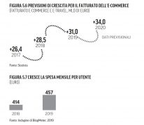 Nel 2020 la grande distribuzione dovrebbe ancora giovarsi di una favorevole canalizzazione dei consumi e dovrebbe sovraperformare il mercato totale. Alla fine del 2019, infatti, lo sviluppo della rete di vendita in metri quadri è stato di circa 3,5 punti percentuali per i discount e di circa mezzo punto per i supermercati e analoghi tassi di sviluppo sono prevedibili anche nel corso del 2020. Per gli iper, il previsto calo della rete di vendita (-0,6% a fine 2019) dovrebbe essere compensato, così come accaduto già nel 2019, da un più positivo andamento a parità di rete degli altri negozi. Nelle dinamiche evolutive nel 2020 si segnala anche un lieve rialzo dei prezzi (+1%) a fronte di circa un mezzo punto registrato nel 2019. Per la distribuzione moderna, quindi, il 2020 si conferma un anno positivo, con previsioni di crescita dell’1,4%, senza, peraltro, tenere conto della spinta del canale e- commerce: gli acquisti alimentari on line nel 2019 si sono, infatti, rivelati particolarmente brillanti (+26% rispetto al 2018, con una quota sul totale grocery prossimo al 2,5%) e continueranno presumibilmente a rafforzarsi nel 2020, con una ulteriore crescita prevista del 30% che contribuirà a rafforzare ulteriormente le dinamiche positive della distribuzione moderna.