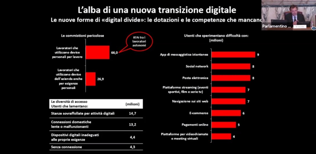 Vincoli e obblighi del periodo pandemico hanno letteralmente trascinato milioni di cittadini dentro il digitale – ha ricordato Valerii – costringendo alcuni a intensificarne l’utilizzo, mentre altri hanno iniziato a utilizzare uno o più device.