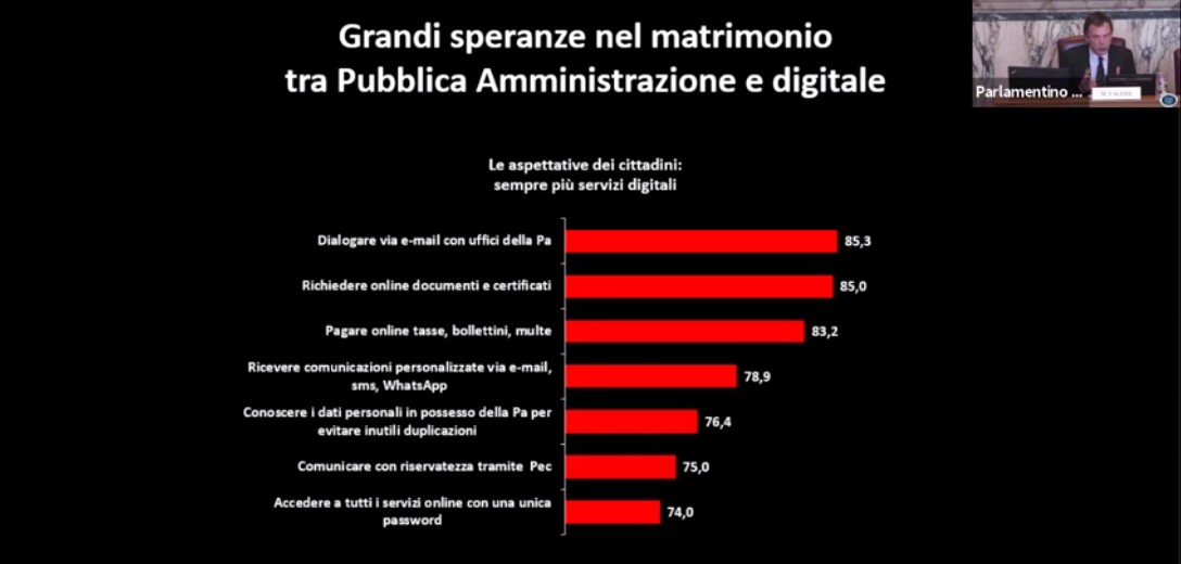 “Una costellazione di attese sociali che indica quel che i cittadini si auspicano che il digitale renda possibile nel rapporto con la PA: più facilità di accesso e tanta semplicità”, come ricordato da Massimiliano Valerii.